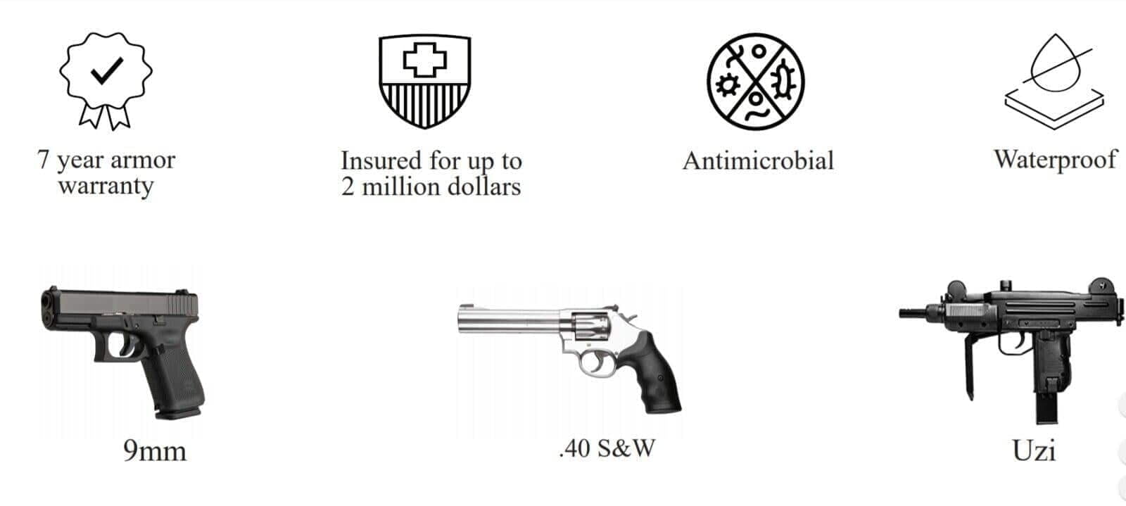 Tested to stop 9mm and .40 S&W ammunition fired from short barrel handguns.